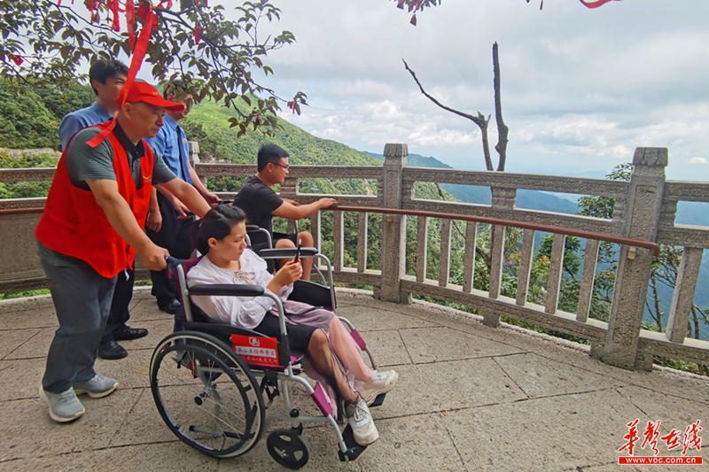“莽山真美啊!在山顶看风景果然是别有一番风味。”索道、无障碍栈道、自动扶梯、直升电梯……在郴州市宜章县莽山五指峰景区,借助这一系列无障碍设施,残障人士坐着轮椅也可以实现登顶山峰的愿望了。