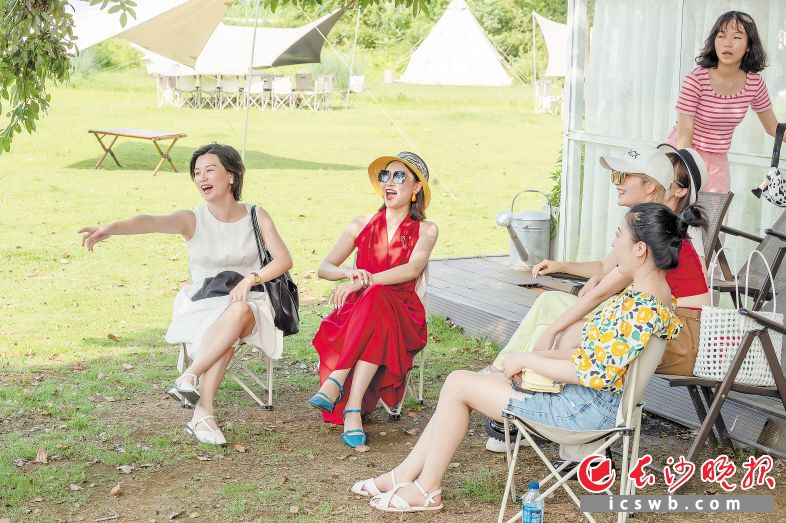 “预约的客人到啦,快招呼大家到小树林里坐,凉快凉快!”20日下午4时,明晃晃的太阳还挂在山头,岳麓区莲花镇桐木村的蜗牛花园集市便迎来了晚场露营的第一批客人。老板赖枫华从天幕内探出头,让工作人员摆好桌椅板凳。