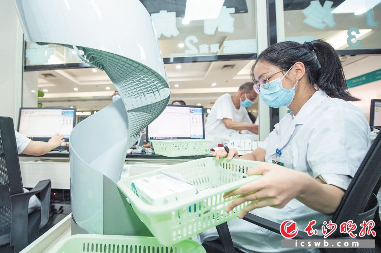 “如今已是智慧药房,十几秒钟药就出来!”市民叶女士赞叹说。长沙市第一医院药剂科主任何鸽飞介绍,去年8月9日投入使用,市级属首家。记者看到,药师接到药方审核其合理性,再在医院信息系统找到患者相关信息,点击电脑上发放药品指令,智慧药房马上就开始自动配药。瞬间,由两只机械大手臂自动抓取的药品,通过传输道,将药发送到取药窗口。每张处方调配时间为12~15秒。2万多盒药品中,机械手抓药,全过程零差错。