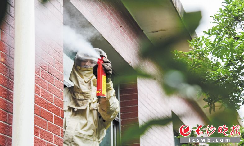 长沙晚报7月19日讯(全媒体记者 刘琦 实习生 黄玲)烈日炎炎,暑气正旺——夏季是蜂类活动最为活跃的季节。连日来,长沙消防接连接到蜂类扰民警情,“清蜂侠”总能第一时间上门,冒着高温酷暑摘除蜂窝,为民解忧。