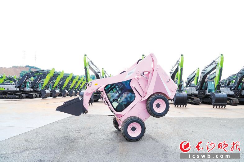 前轮着地,后轮悬空,升出铲斗,“翩翩起舞”……在中联智慧产业城,随着音乐声响起,由中联重科自主研发制造的滑移装载机“跳”起华尔兹,还有重型挖掘机叠高脚杯、穿针引线等表演,十分吸引眼球。