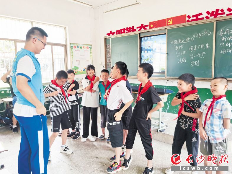 湖南师大附中1917班的高三毕业生胡步遥在给宁乡市天马小学学生上音乐课。受访者供图