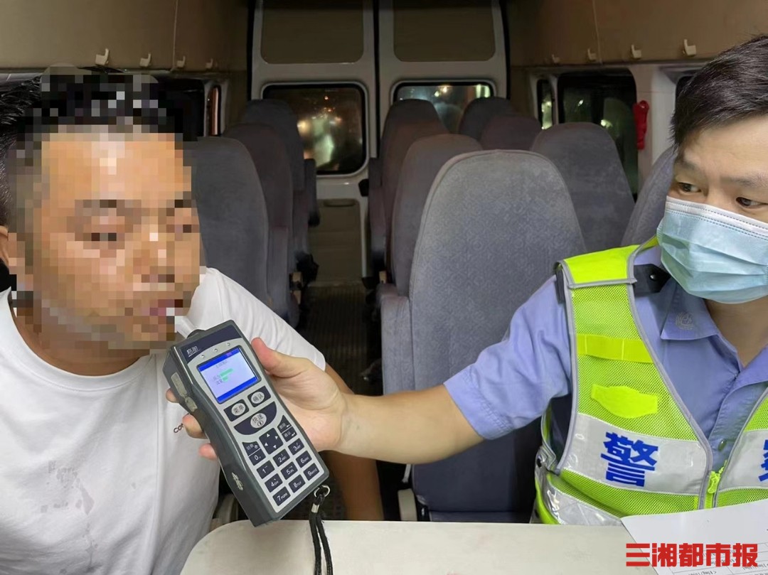 17日20时20分,长沙雨花交警六中队民警在洞井路湘府路口开展涉酒驾驶整治,对车牌为湘AQ**0学的驾校教练车司机进行酒精初检时,发现快速酒精检测仪闪起了红灯。“只喝了一点点啤酒,一点点。”司机表示。