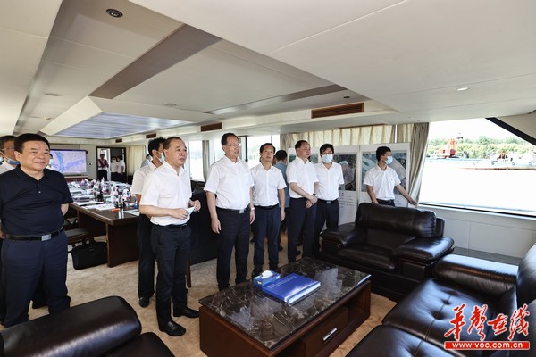 (毛伟明乘船沿途考察铜官港区、虞公港区,了解港区整体规划。以上照片均由华声在线全媒体记者 刘尚文 摄)