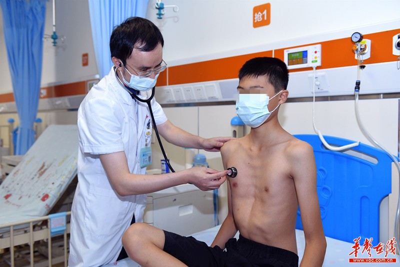 7月13日上午,湖南省儿童医院心胸外科病房,14岁男孩亦辉(化名)因为胸口“凹进去了”赶在暑假来治疗。亦辉说,小学六年级的时候就发现自己的胸口有点“不一样”,刚开始也没有特别注意。到了初二年级,这点“不一样”越来越明显,骨头往里“反着长”。因为身体的异常,亦辉和同学们也疏远了。“我要快点好起来!”对即将开始的新生活,亦辉非常期待。