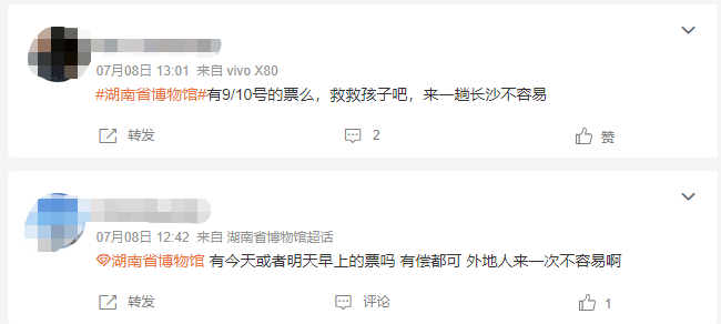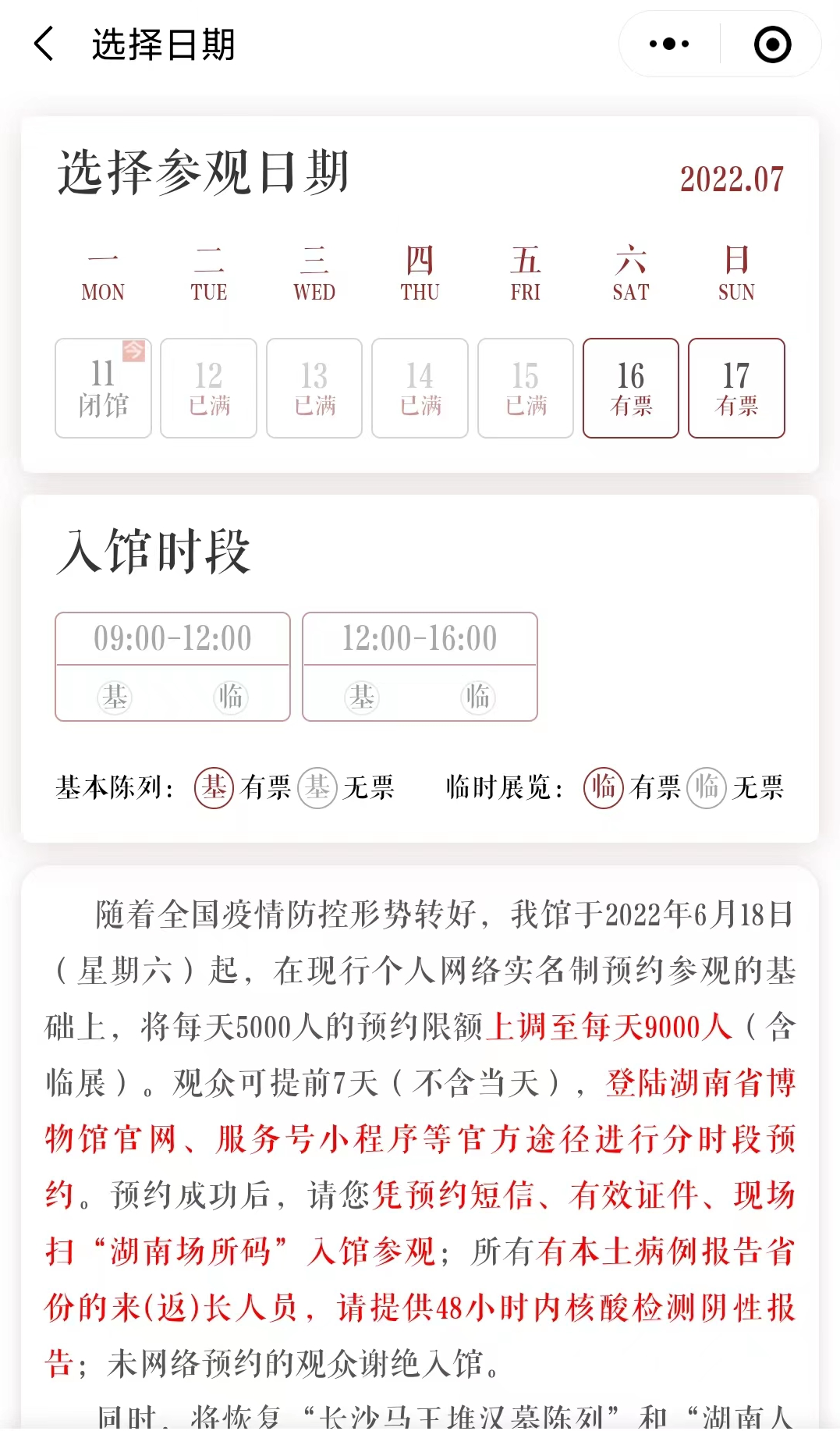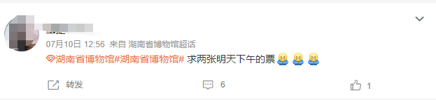 也就天天有人在线求票罢了。作为网友眼中最难约的博物馆,湖南省博物馆目前每天预约限额9000人,观众可提前7天预约。目前,直到7月15日的预约名额都已经爆满。