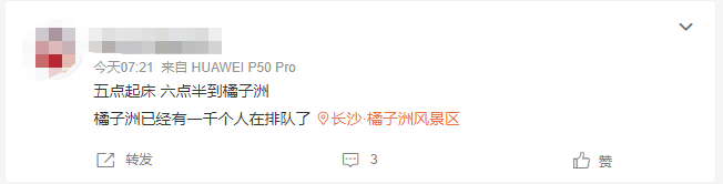 晚上10点的橘子洲依然很多人,早上7点的橘子洲又排起了长队。