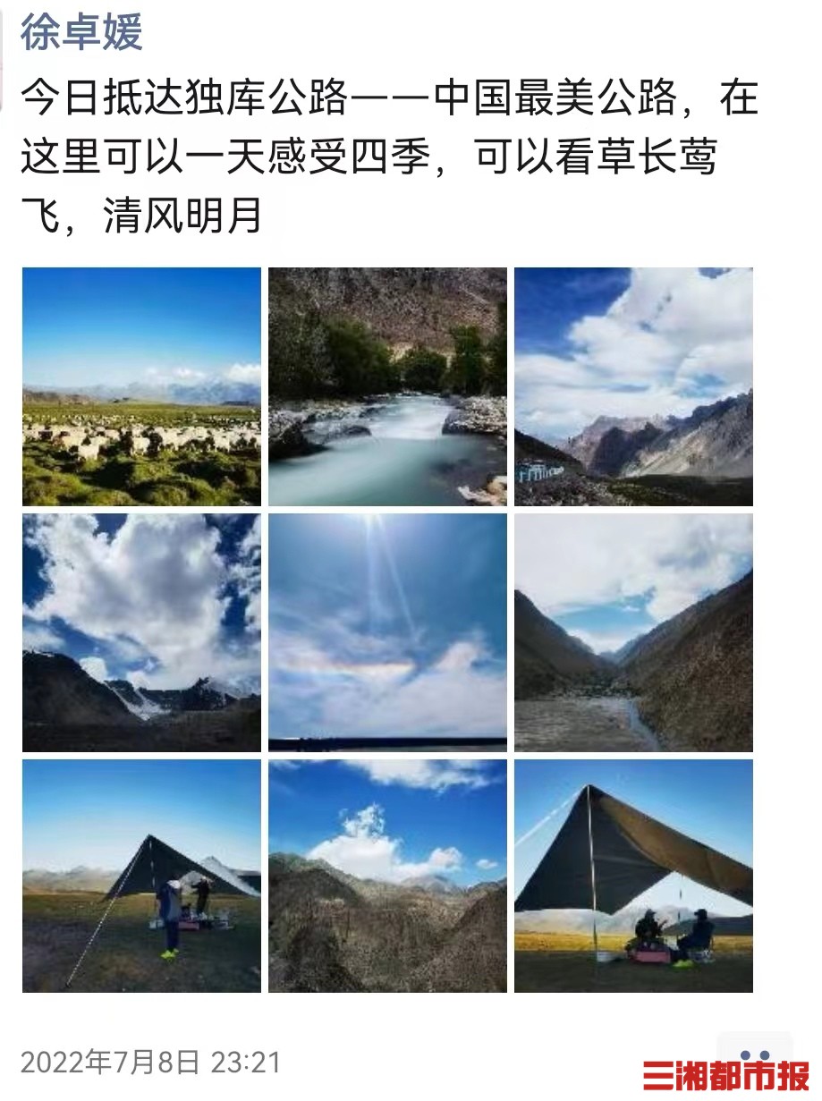 10天来,徐卓媛路遇塔尔寺青海湖、大柴旦翡翠湖,在沙尘暴里疾驰,在中国最美公路——独库公路感受祖国大好河山。