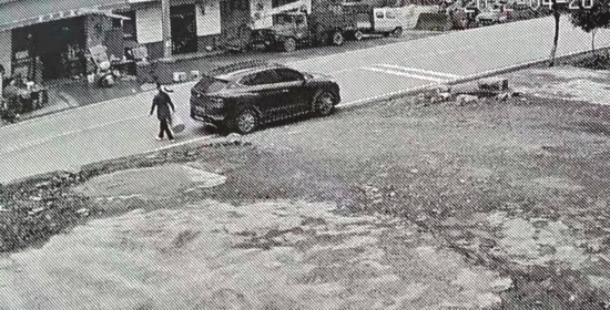4月23日,李女士下车后,提着衣架、卫生纸等“礼品”前往夏女士家的小卖部推广“互联网线上招聘”二维码。图/受访者提供