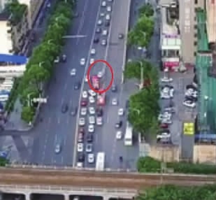 民警调取了事发当时的路面监控视频,画面显示,白色小车从最右边车道,连续跨越四五个车道,在匝道口“卡位”,消防车被小车挡住。此时其他车辆纷纷避让,给消防车让道,但该车仍然不动。当其他车辆避让开,留出车道时,白色小车驾驶员往左打方向盘,抢在了消防车前方……