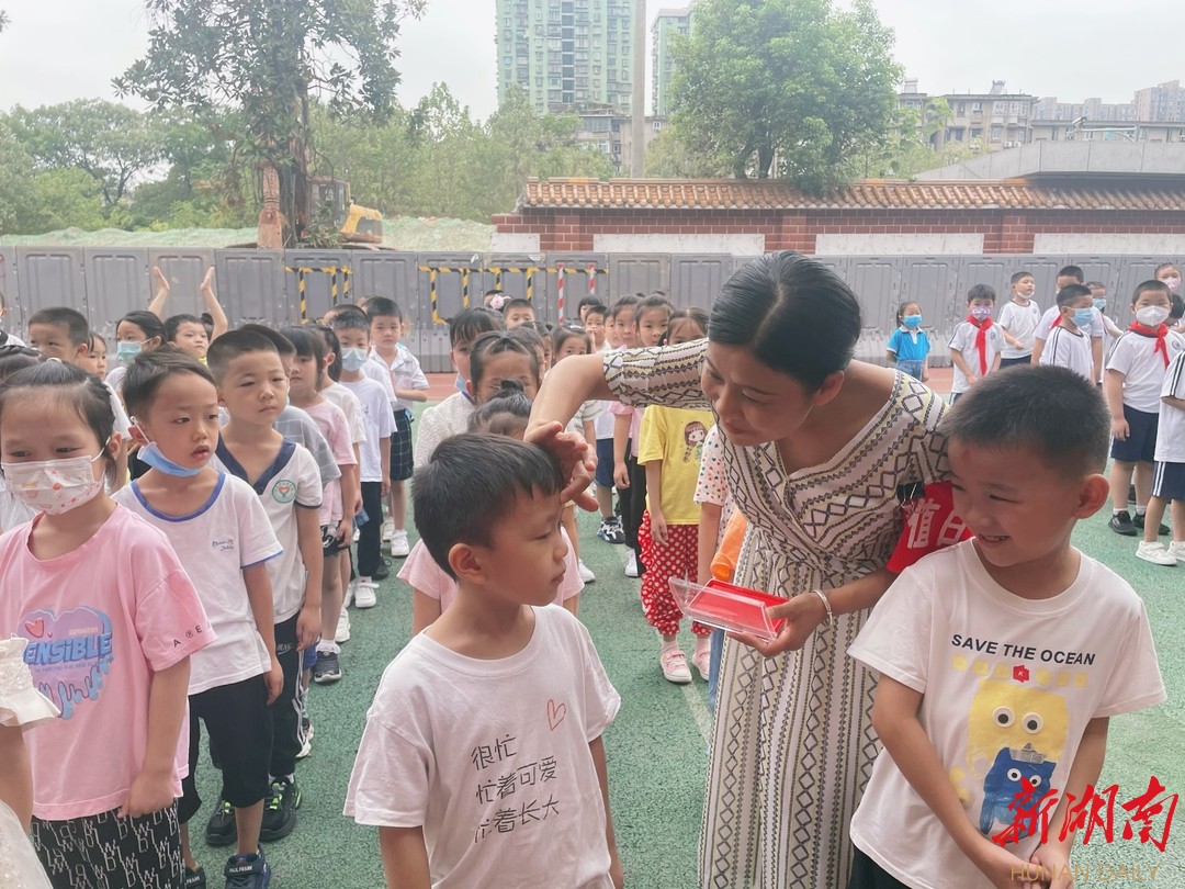 紧接着,大队部辅导员高老师宣布了上学期“红领巾争章手册”评比中,获得优秀争章中队、争章达人及个人二星章的名单,恭喜获奖班集体和获奖同学,也希望本学期有更多的雨花小队员们积极争章,勇敢拿章。