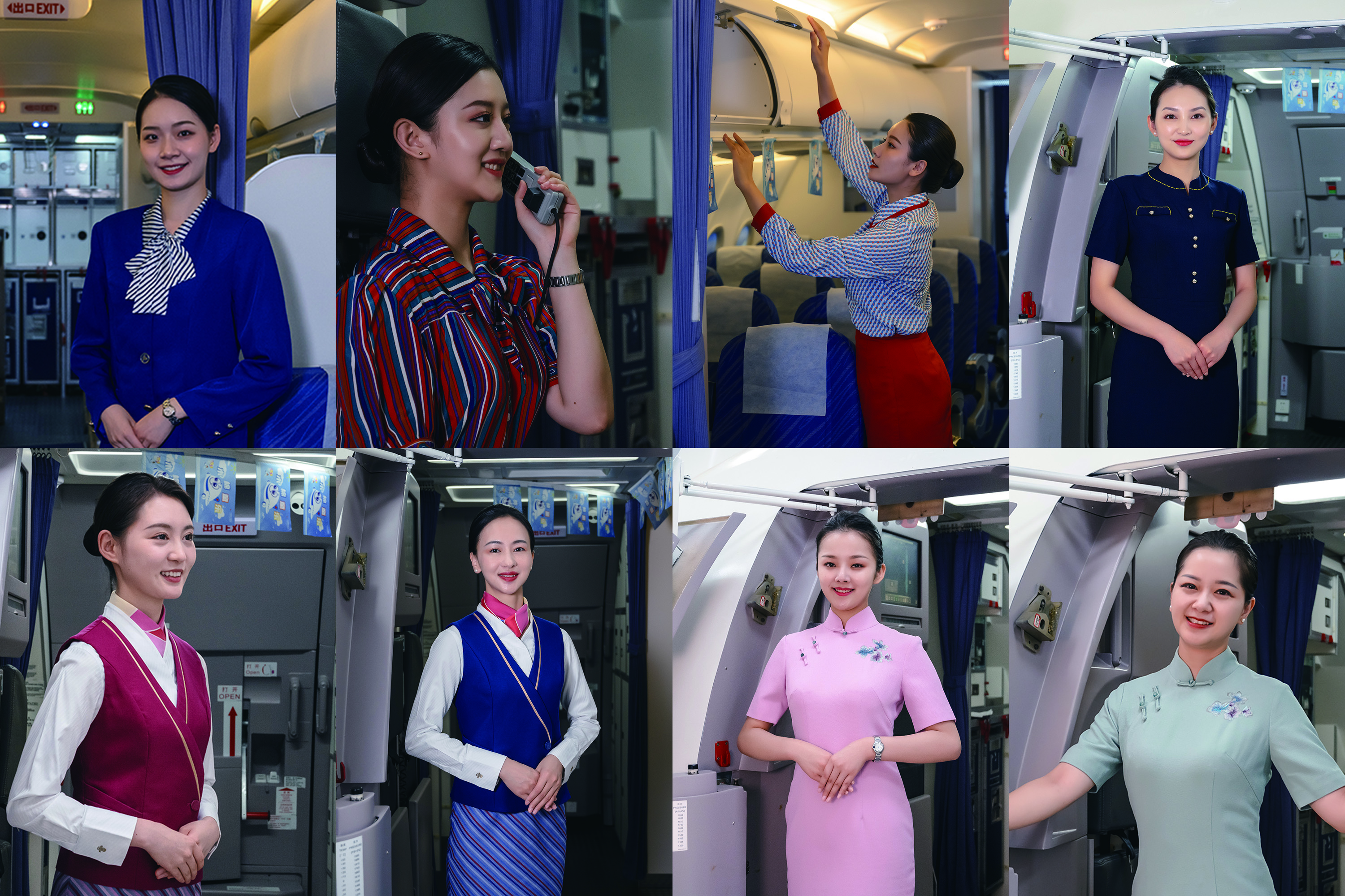 这场制服秀,汇集了南航湖南分公司成立30年以来,紧跟时代变化更迭的5套空乘制服。从最初的“中国蓝”“彩条装”制服,到民航改革发展阶段的“大红色双排扣”制服和凸显端庄优雅的“小立领”制服,再到现在的“碧水红棉 彩云蓝天”制服和刺绣旗袍,每一套制服,都让旅客感慨不已。