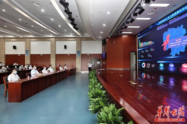 (毛伟明通过省总工会大数据展示中心了解帮扶情况。)