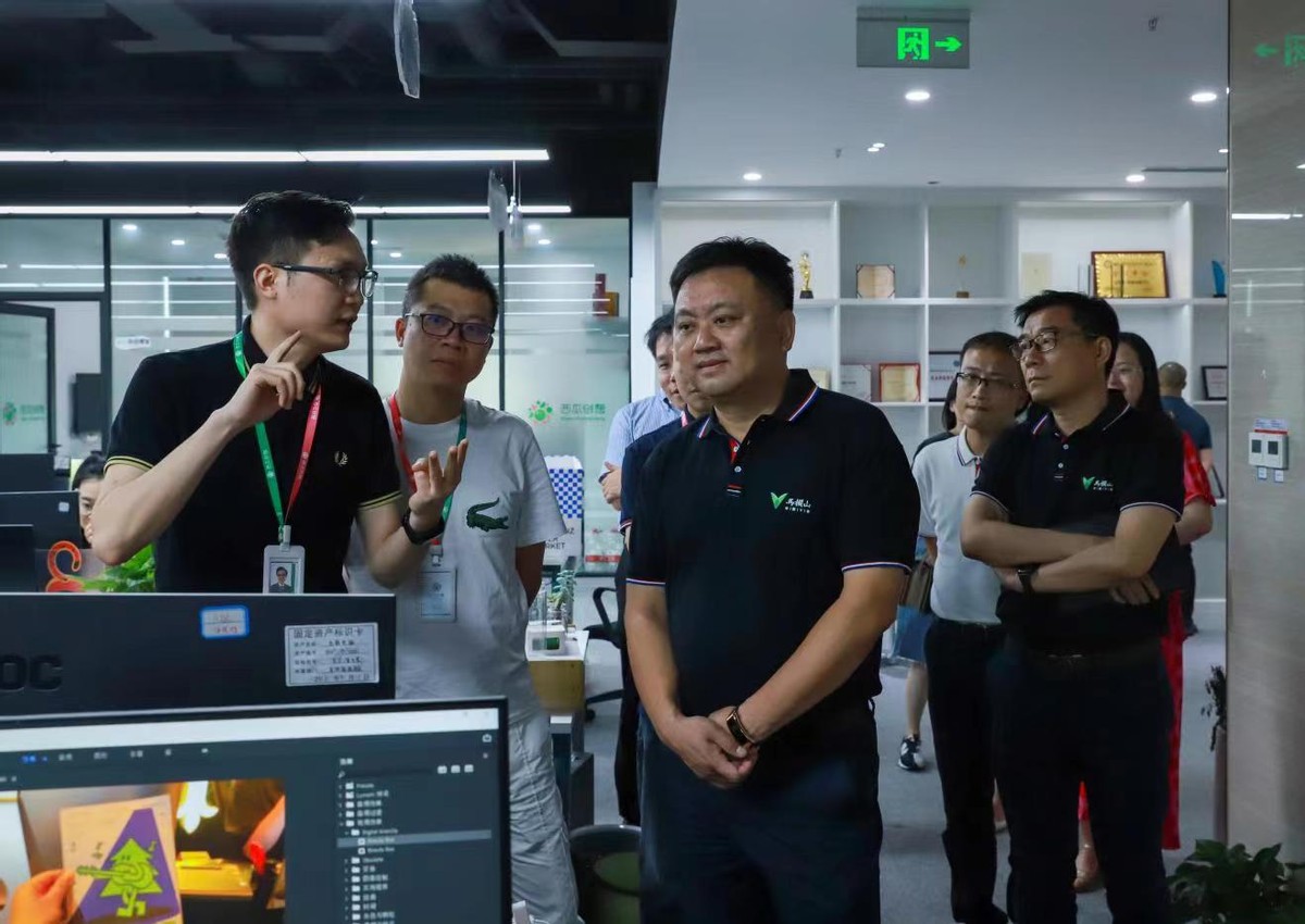 (园区党工委书记邹犇淼带队走访园区新媒体企业,与企业负责人面对面交流,帮助解决发展难题。)