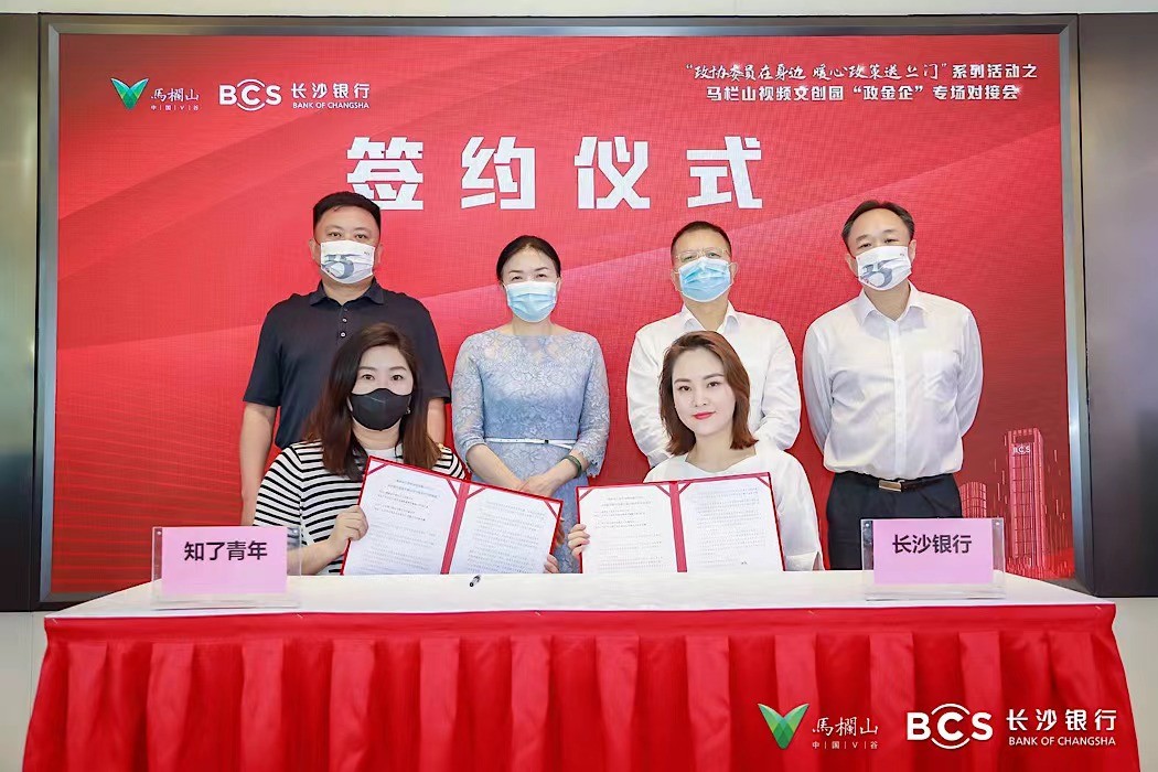 (园区财政金融局牵头组织多家金融机构及园区企业举办“政金企”专场对接会。图为园区企业湖南知了青年文化有限公司与长沙银行在活动现场进行预授信签约。)