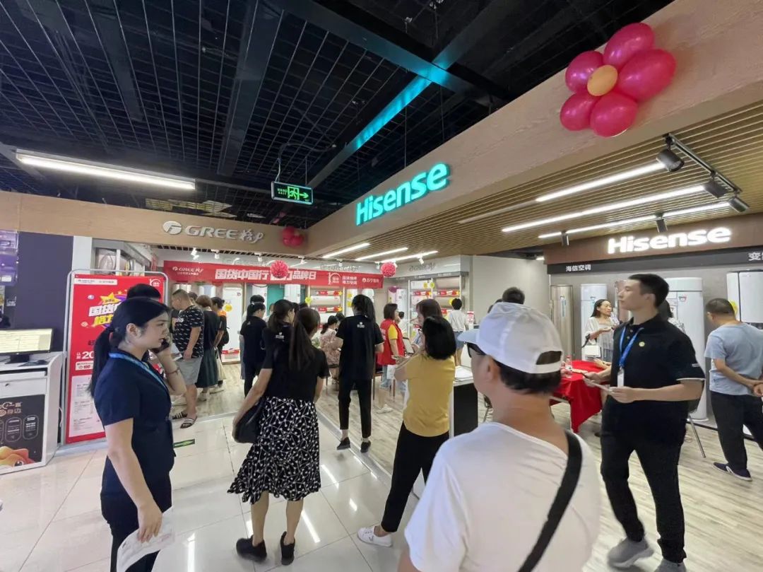 8月11日午后,热浪在柏油路上翻腾,苏宁易购五一广场店人气旺盛,大多是前来选购空调、冰箱的顾客。