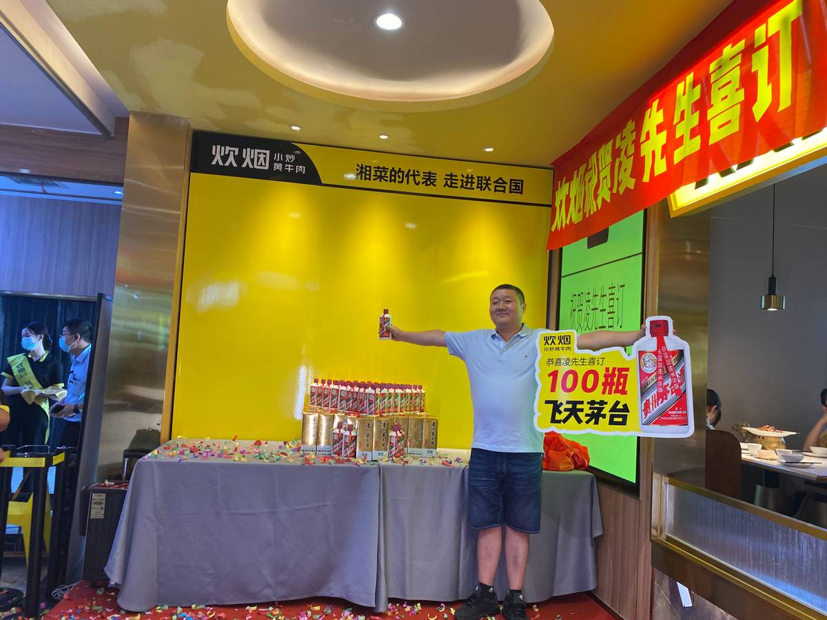 聚餐当天,门店为凌先生举行了特别的订酒仪式,现场每一瓶酒都经过扫码查验,并回收酒瓶及其它包装物,未饮用完的茅台酒由餐厅提供专用容器给凌先生打包带走。凌先生把老婆和孩子接到现场,还有迫不及待赶来见证和品鉴飞天茅台的挚友。以小炒黄牛肉为首的9大经典湘菜和100瓶红红火火的飞天茅台相映成趣。据炊烟黄兴铜像店店长刘诺介绍,自活动推出以来,喝茅台配小炒黄牛肉的现象在门店明显增多。“小炒黄牛肉的点单率一直都在95%左右,几乎是每桌必点。有很多预订了茅台的顾客,甚至会点2-3盘小炒黄牛肉搭配着吃才过瘾。”