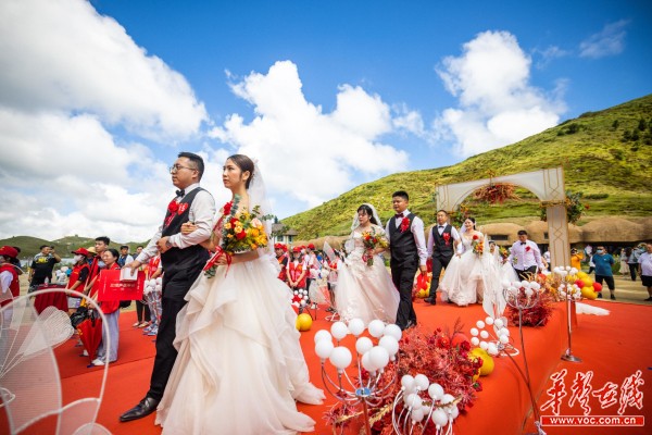 当日上午10时10分活动正式开始,取十全十美之意。活动以“新风北湖•简爱一生”为主题,寓意为结婚在北湖,新人新风尚,简婚不减爱,牵手伴一生,倡导移风易俗。在仰天湖大草原的大舞台,红毯与拱门繁花相衬,悦耳的《婚礼进行曲》奏起,新人们依次上台交换了戒指、行亲吻礼,20对新人集体宣读了结婚誓词,并在婚俗文化改革墙上签名,蓝天绿草见证了他们的真挚爱情。