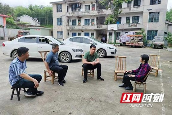 ▲ 益阳市桃江县鸬鹚渡镇,危房拆除前,工作人员上门给符翠君老人做思想工作。