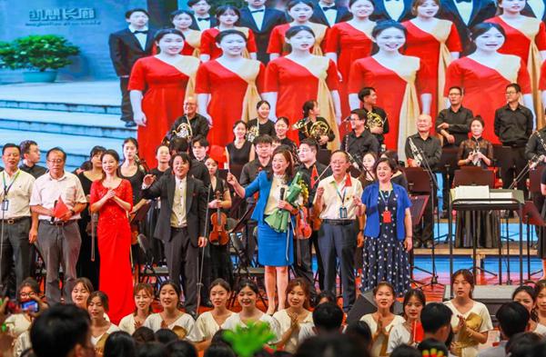 配乐诗《湘江实验室之歌》洋溢着豪情满怀的礼赞,描绘着一幅学科交叉融合的画卷。《卡门序曲》坚定有力的节奏和威武雄壮的曲调表现了人物的飒爽英姿。来自中央歌剧院的耿哲为全场观众献上一曲雄浑有力的《斗牛士之歌》,一场惊心动魄的斗牛大赛跃然台上;一曲《黄河颂》慷慨激昂,歌颂了博大精深的中华文化和英雄的中华儿女。合唱歌曲《人世间》《这世间那么多人》曲调温暖质朴,校党委书记陈晓红院士应邀与师生合唱,现场洋溢着温馨融洽的氛围。中央歌剧院歌唱家秦侃如带着《笑之歌》走入了观众们的视野,《玛依拉变奏曲》亦在欢快的笑声中活泼登场,一名多才多艺、美丽动人的哈萨克姑娘出现在舞台上,将她的故事娓娓道来。男女声重唱《领航》歌颂了伟大的中国共产党,同心共筑中国梦。音乐学院长风合唱团携手“留声机组合”带领全体师生齐唱《如愿》《明天会更好》,携手2022级新生回首过去、展望未来,开启美好人生。全场观众齐声欢唱,掌声雷动。