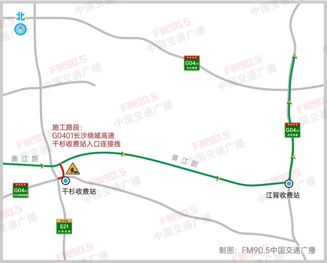 16日,本台记者从湖南省长沙市长沙县公安局交通警察大队了解到,为保障干杉收费站与黄江公路连接线顺接施工期间的安全畅通,从9月18日7时起至9月28日24时止,G0401长沙绕城高速干杉收费站入口将无法上高速,届时,将对您的出行造成一定的影响,请各位驾驶员及时绕行。
