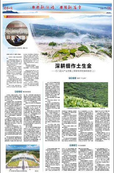 念好“产业经”,奏响“富民曲”。近年来,石门县坚持“绿水青山就是金山银山”的发展理念,发展绿色生态农业,深入实施“六大强农”行动,扛牢粮食安全的政治责任,叫响石门柑橘、石门茶叶、石门土鸡等区域品牌,推进农业产业化、农业现代化,引领全县农业转型升级,一组一二三产业融合发展的交响乐在大山深处久久回荡。