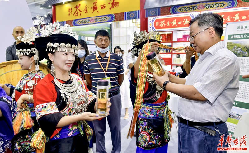 华声在线9月3日讯(通讯员 田家丽 记者 刘安安)传统民族服饰,古朴茶艺表演、现场茶饮品鉴……9月2日上午,2022年第十四届湖南茶业博览会在长沙开幕,十家保靖黄金茶企业代表参会。