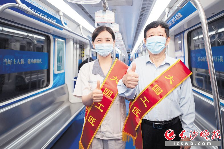 艾爱国(右)、易冉两位大国工匠乘坐主题专列。 均为长沙晚报全媒体记者 刘晓敏 摄
