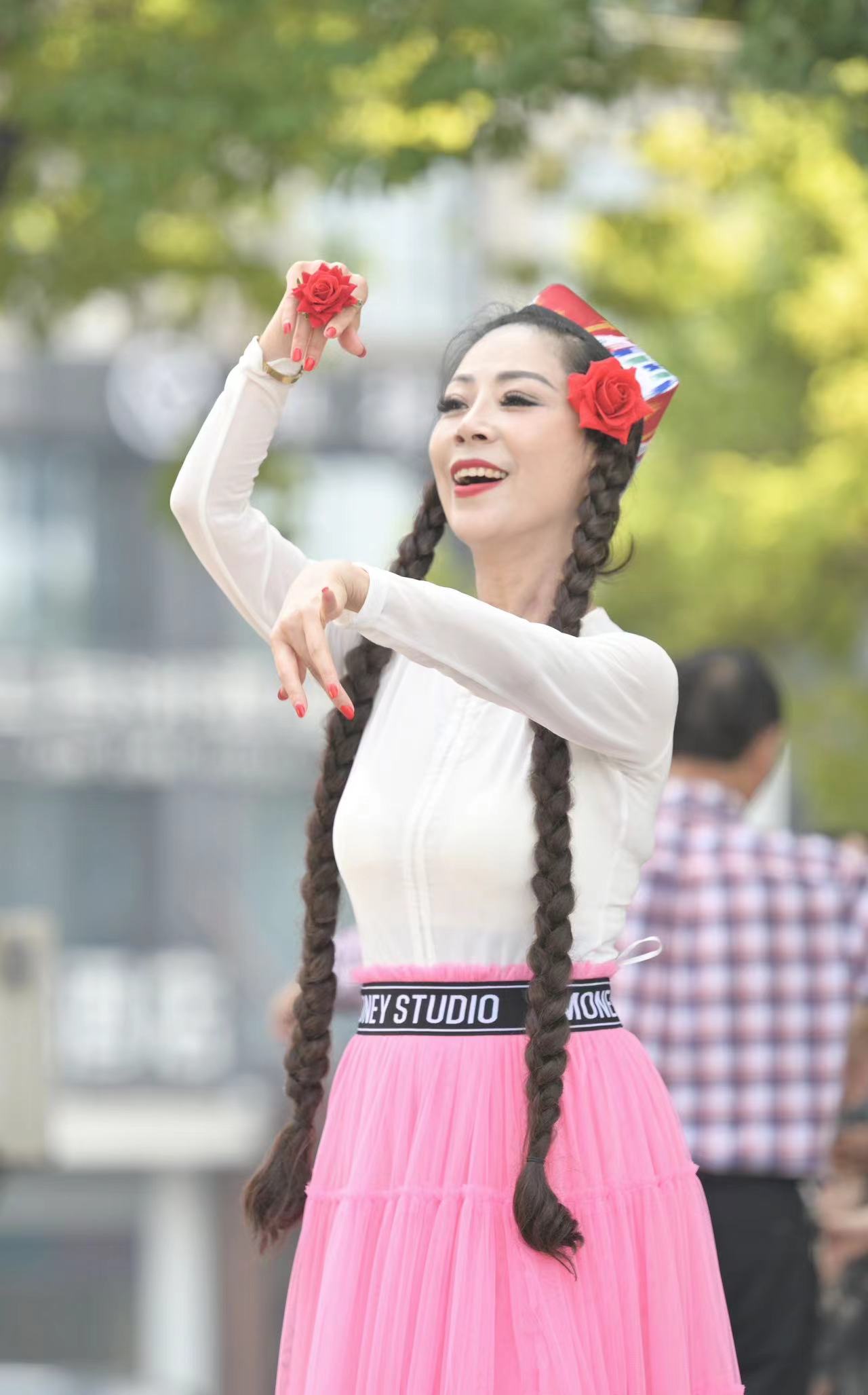 “拍得真好看,笑得真好!”覃女士接过照片,忍不住向舞伴们展示。她已经退休,年轻时就被新疆舞的热情奔放吸引,于是加入了江边这群舞友的队伍。