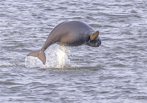 岳阳华龙码头长江水域,江豚跃出水面。石述威 摄
