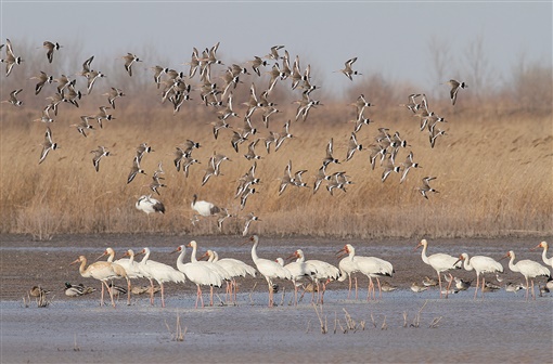 为了更好地让鸟类“留下来”,保护区先后实施东方白鹳、黑嘴鸥、鹤类等关键物种栖息地保护,以及柽柳、野大豆等原生植物保育和水生生物恢复等工程,生物多样性逐步提高,越来越多的鸟类在此安家。这里不仅成为东方白鹳的全球最大繁殖地,每年还有几百万只鸟儿在这里迁徙、越冬、繁殖,成为“鸟类国际机场”。