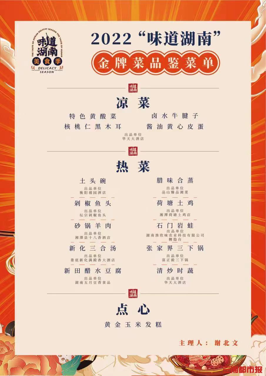 (“味道湖南金牌菜”品鉴晚宴 3 2022“味道湖南”金牌菜品鉴菜单。)