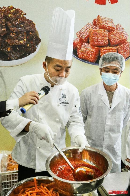 大师做的辣条到底有什么不一样?以后是不是可以自己在家动手做辣条了?……只见徐溶将250克辣椒油盛入面筋内,再依次放秘制红油、白芝麻、调味香粉,开始手工拌辣条,不忘向围观宾客现场科普:均匀调味,也讲究按工序手制,能激发辣条的麻辣香鲜,“这是融入湘菜技艺的灵魂,也糅合了老一辈的技艺传承,我们要让每家每户都吃得起,吃得健康、卫生。”