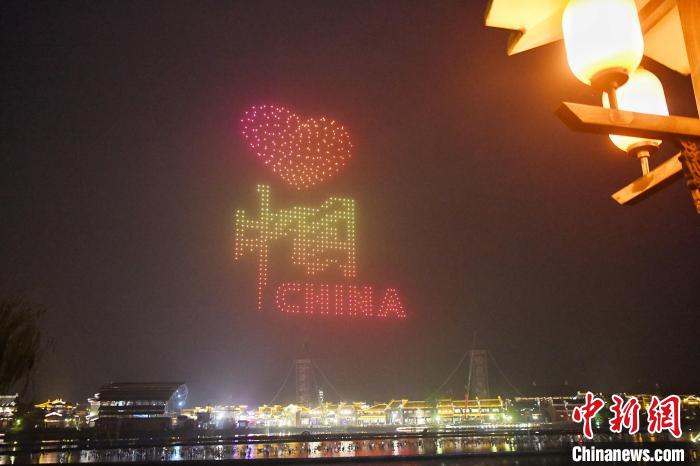 无人机表演助阵首届长沙市旅游发展大会。 杨华峰 摄