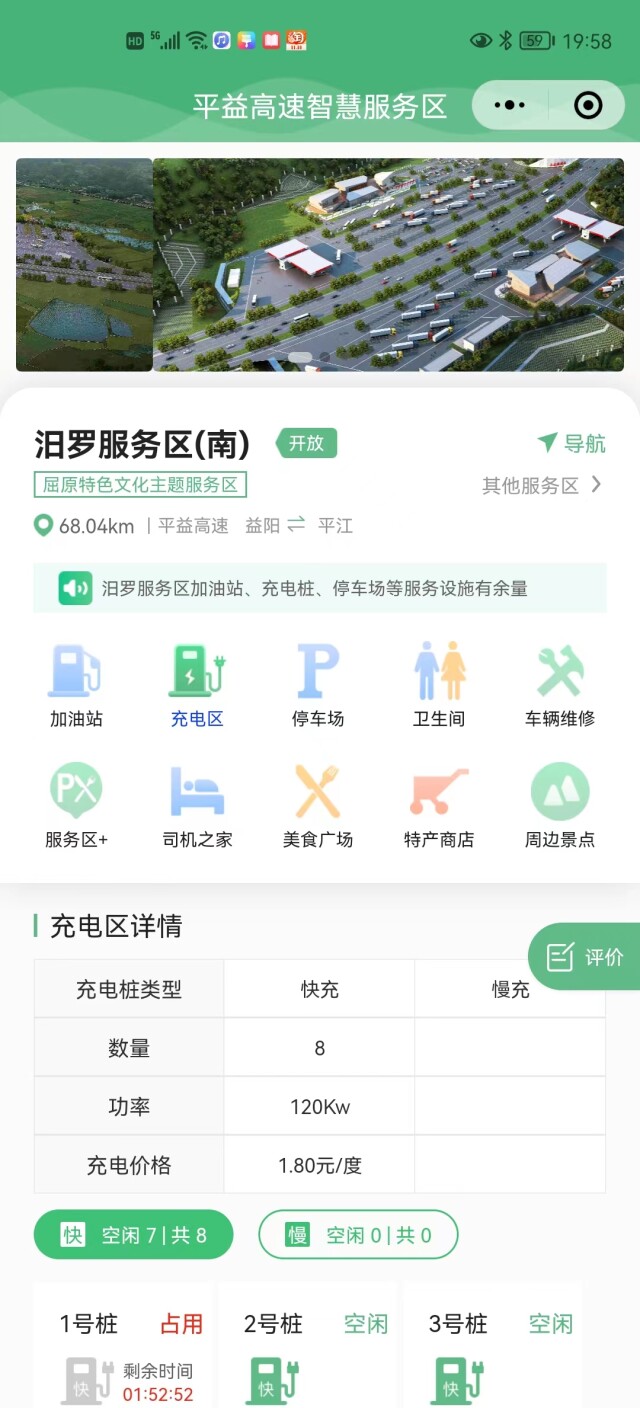 行驶在平益高速上,距离长寿服务区还有11分钟车程时,记者通过“湘行相伴”小程序,了解到长寿服务区的停车位、充电桩、美食甚至洗手间的详细信息。