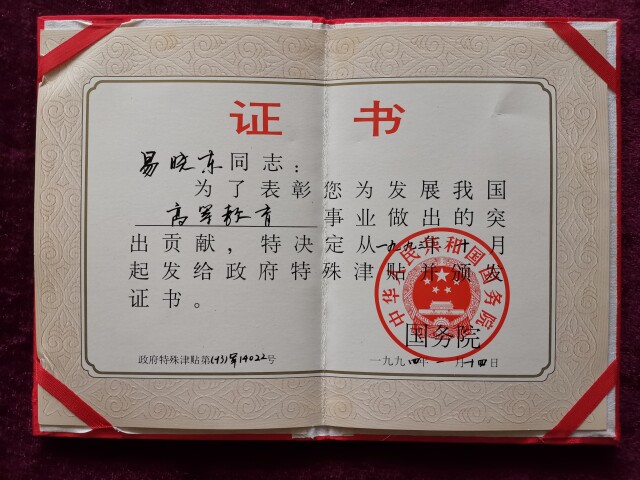 (易晓东荣获国务院特殊津贴。受访者供图)