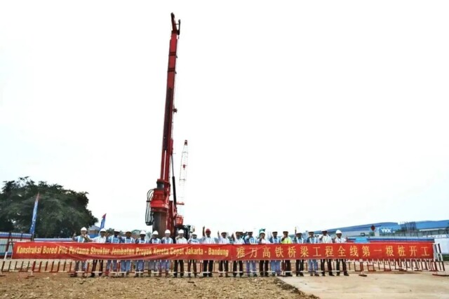 (三一SR360R打下雅万高铁“第一桩”。三一集团供图)