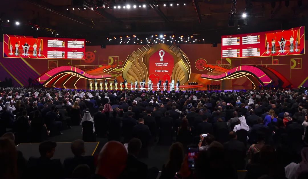 (4月1日,卡塔尔世界杯抽签仪式在DECC多哈会展中心举行。抽签仪式现场。新华社发)
