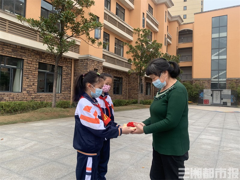华声在线11月17日讯(全媒体记者 刘镇东 黄京)“阿姨,您辛苦了,冬天注意保暖,这是我给您做的围脖。”11月16日下午,长沙市天心区仰天湖中建小学门口出现了暖心一幕,一小学生双手捧着带有小红花的毛绒米色围脖跑向了正在巡逻的保安,一边说着一边将围脖递上去。这是她耗时两三小时用一针一线钩编出来的,也让这个愈加寒冷的冬天多了一份暖意。