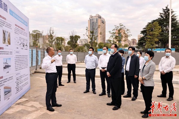 (11月10日下午,省委副书记、省长毛伟明调研长沙火车站提质便民工程。图为毛伟明现场查看城际线与地铁2号线换乘提升项目推进情况。)
