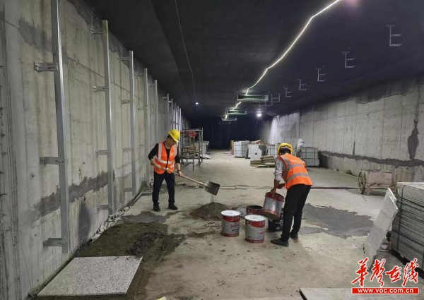 (施工人员在地下通道忙碌施工。 以上图片均由华声在线全媒体记者 刘尚文 摄)