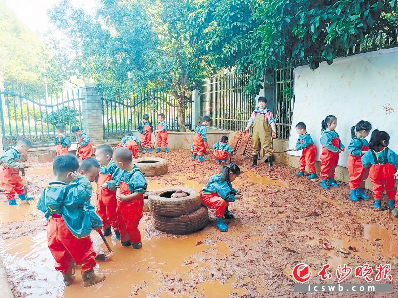 沙水区,孩子们正在快乐地玩沙子、玩水;建构区,孩子们用各种材料建房子、搭桥梁;泥土区,孩子们高兴地在泥水中玩泥巴;涂鸦区,孩子们用五彩涂料在墙上画画、涂抹;探险区,孩子们在进行丛林探险;综合区,孩子们在玩各种玩具……上午9时左右,湖南省人民政府机关幼儿园的户外场地上,孩子们正开心地玩着各种游戏。“我们非常重视孩子的自主游戏,在园内建立了6个游戏区域,孩子们每天可以在这里自主玩乐一个小时。”副园长刘雅慧介绍,在户外自主游戏中,老师“闭住嘴、管住手、睁大眼、竖起耳”,把游戏的自主权真正交给孩子,让孩子们在“真游戏”中成长。