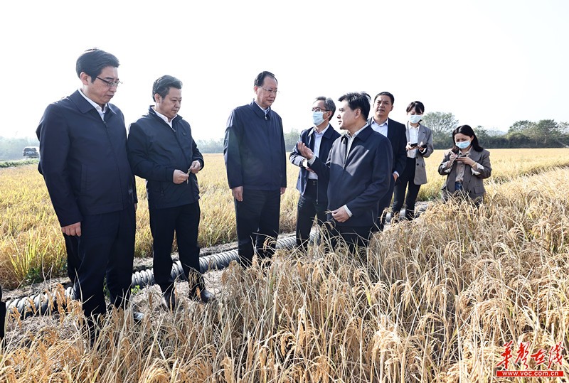 (11月1日,省委副书记、省长毛伟明在湘潭县射埠镇低镉水稻试验示范基地察看低镉水稻品种生长情况。)