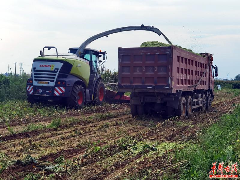 岳阳县丰牧种植专业合作社,工人们正抢抓晴好天气收割玉米。庄稼收割后,隆隆作响的秸秆回收粉碎机便在地里欢快劳作,玉米秸杆被切割粉碎后又被“吐”出来装车运走。工人师傅说,这些粉碎的玉米秸秆,将被运送至长沙奶牛养殖基地,发酵成为青储饲料。