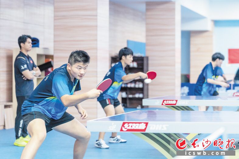 长郡中学乒乓球馆内,队员们在刻苦训练。长沙晚报全媒体记者 周数邑 摄
