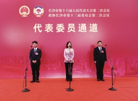 12月28日上午,长沙市第十六届人民代表大会第二次会议在长沙人民会堂举行第一场“代表通道”,6位长沙市人大代表走上“代表通道”,接受媒体记者的集中采访。