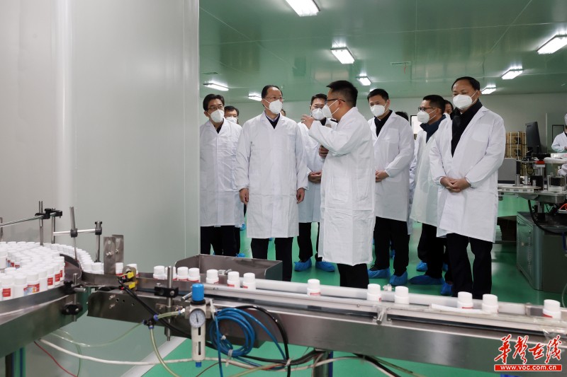 (12月27日上午,省委副书记、省长毛伟明在浏阳生物医药园九典制药股份有限公司调研。)