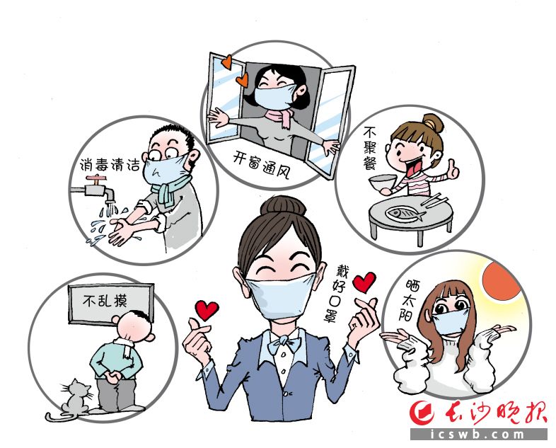 居家环境要以清洁为主、消毒为辅,优先使用阳光暴晒、热力等物理消毒方法。每天做好日常清洁,室内垃圾要及时清理;开窗通风,每天通风2~3次,每次通风不少于30分钟。近期,长沙天气晴好,袁浩建议全天开窗通风。