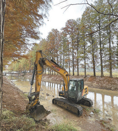 在衡阳市祁东县白地市镇香锦坪村,两排笔直的水杉树下,车壁塘河水缓缓流淌。浅水覆盖的河床上,一台挖掘机正伸展铁臂铲除河岸护坡上的杂草和淤泥,开展清淤疏浚作业。“水是庄稼的命根子。”香锦坪村村民彭冬亮说,今年遭遇极端干旱天气,田间灌渠始终供水充足,这与小微河道清淤疏浚密不可分。