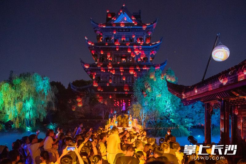 2021年10月,《橘洲·江天暮雪》在橘子洲尾拱极楼上演,美轮美奂的现场吸引游客争相打卡,为橘洲又添新景,成为文旅融合的典范。长沙晚报全媒体记者 邹麟 摄